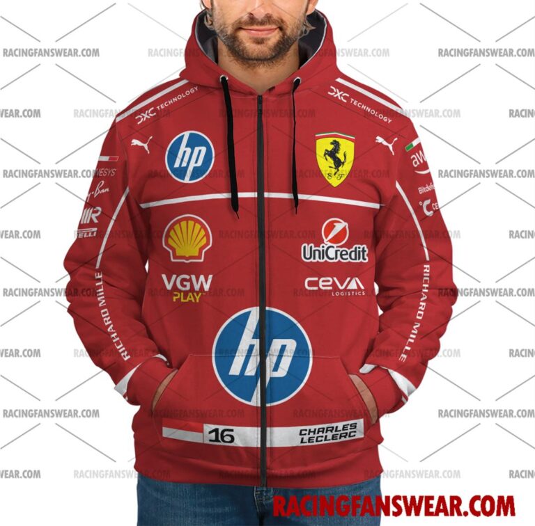 Charles Leclerc Formula One Racing 2025 Uniform Apparel Clothes Sweatshirt Zip Pop Top Hoodie T-Shirt Long Pant