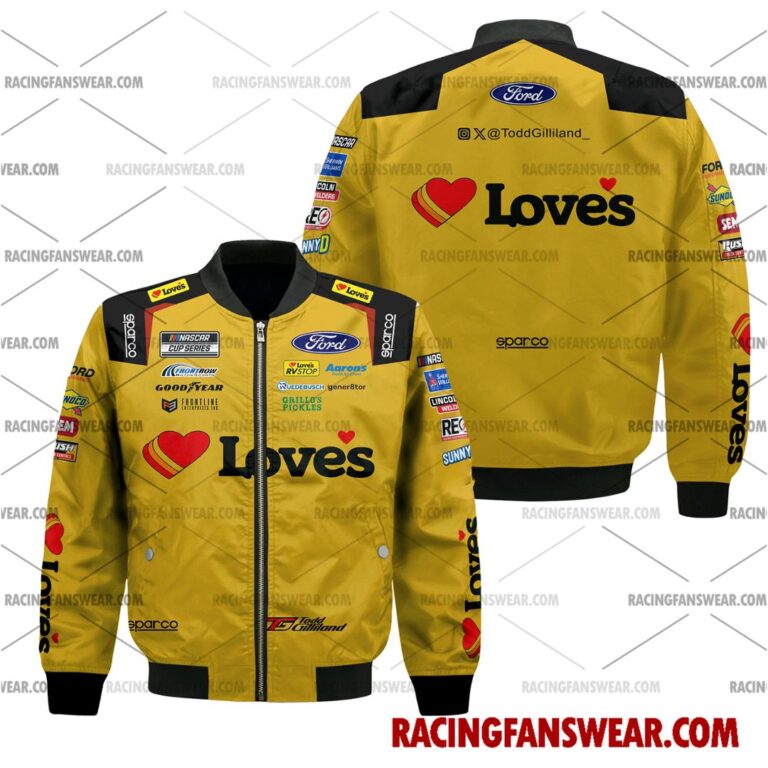 Todd Gilliland Nascar Racing 2025 Uniform Apparel Clothes Bomber Thick Coat Sleeveless Hoodie Hooded T-Shirt